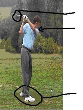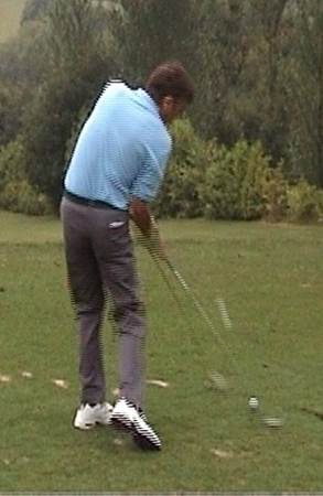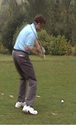 Not a great start – clubhead pointing into the woods TIP: Glance up and check clubhead as you begin the
